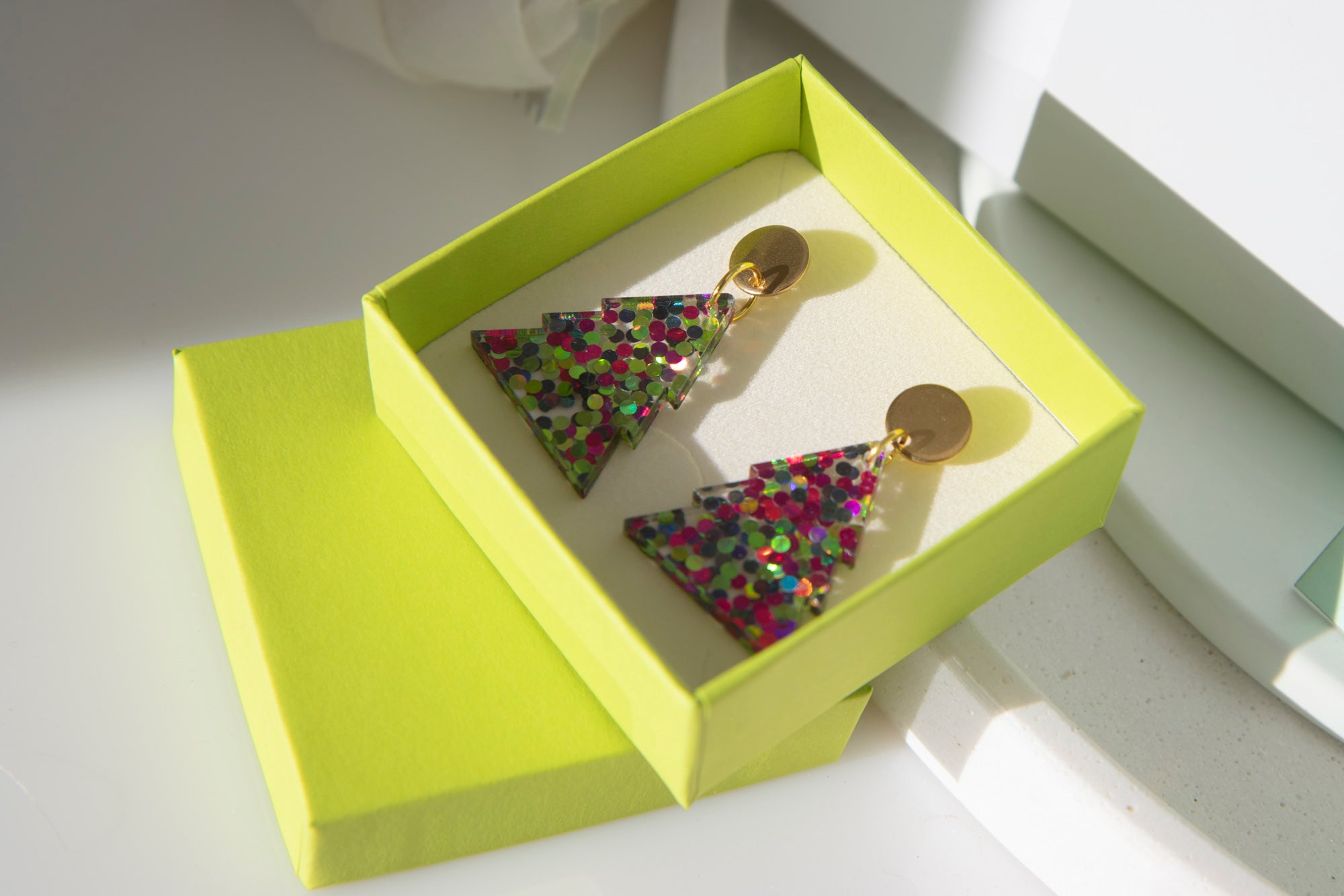 Glitzernde Weihnachts-Ohrringe aus Acrylglas – 3 Farben