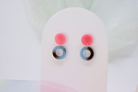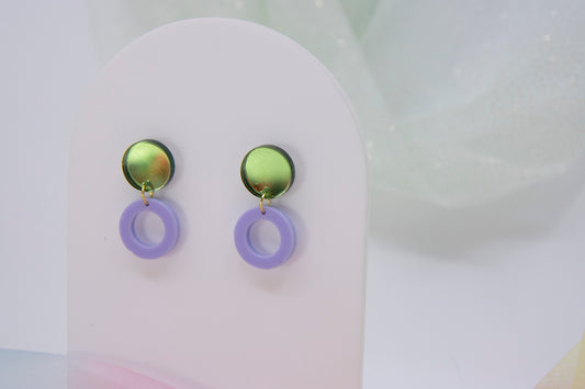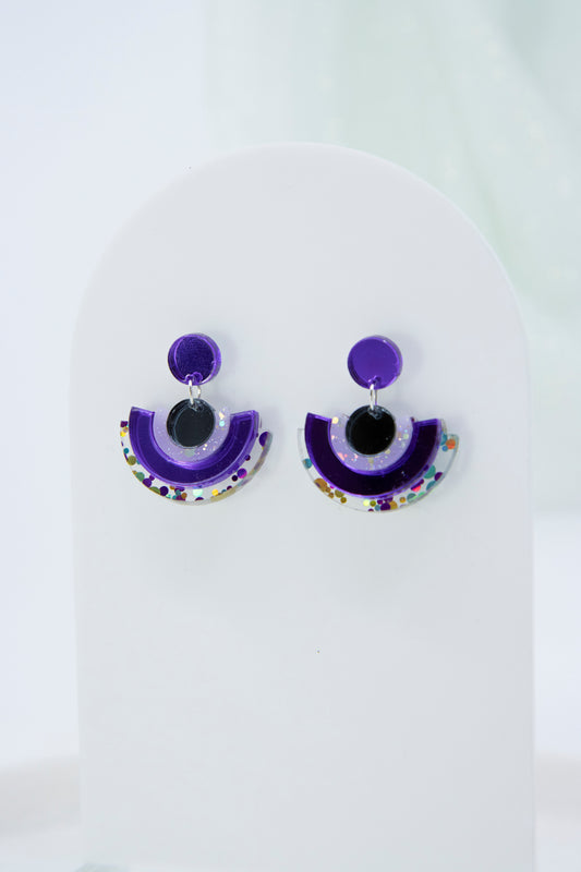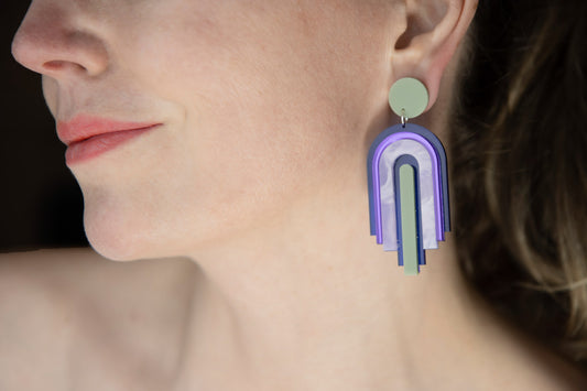 bogen Statement Ohrringe – Blau Transparent & Spiegel Lila Laserschmuck