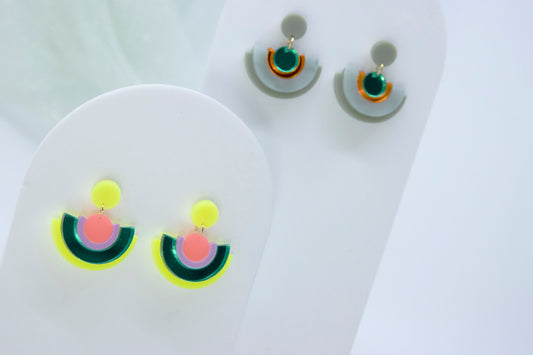 Dopamine Dressing Ohrringe BINA – neon gelb & spiegelgrün