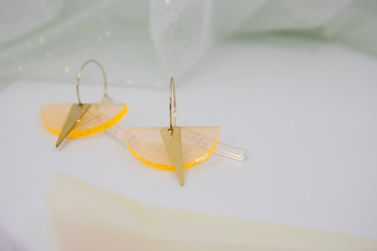 Geometrische Creolen aus recyceltem Neon Acryl irisierend mit Dreieck