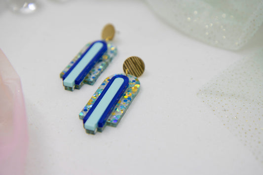 Geometrische Bogen statement OhrStecker "GINA" – glitter blau