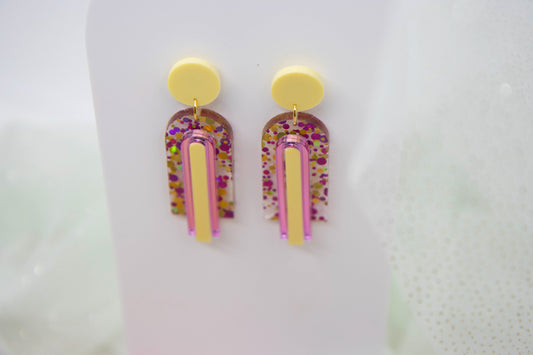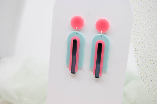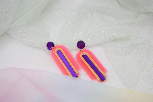Geometrische statement OhrStecker in Fruchtigen Farben "GINA" – Glitter Pink