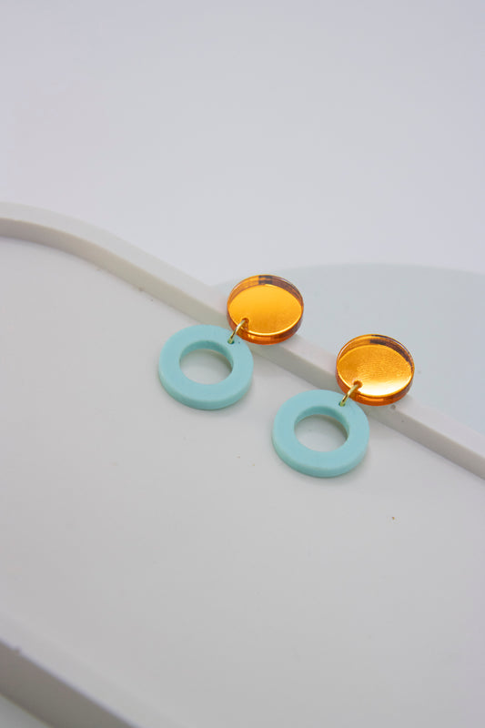 Glitter-Blau & NEON-Orange "LENA"Ohrring Geometrisch