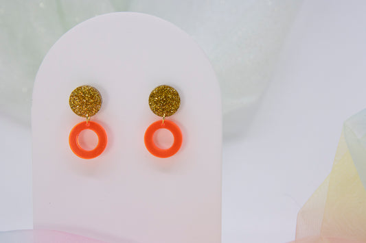Gold-Glitter & NEON-Orange "LENA"Ohrring Geometrisch