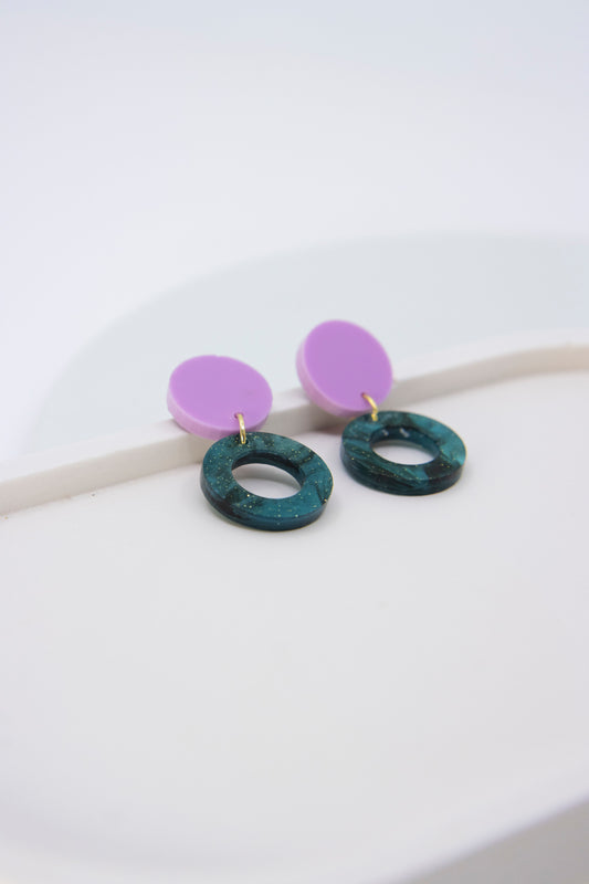 LENA OhrStecker – marmoriertes Lila und Neon-Rot