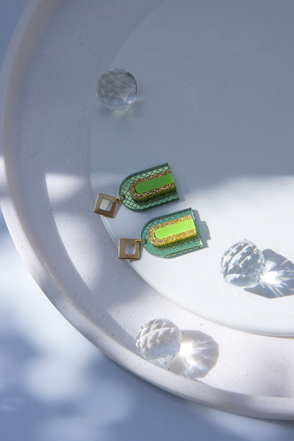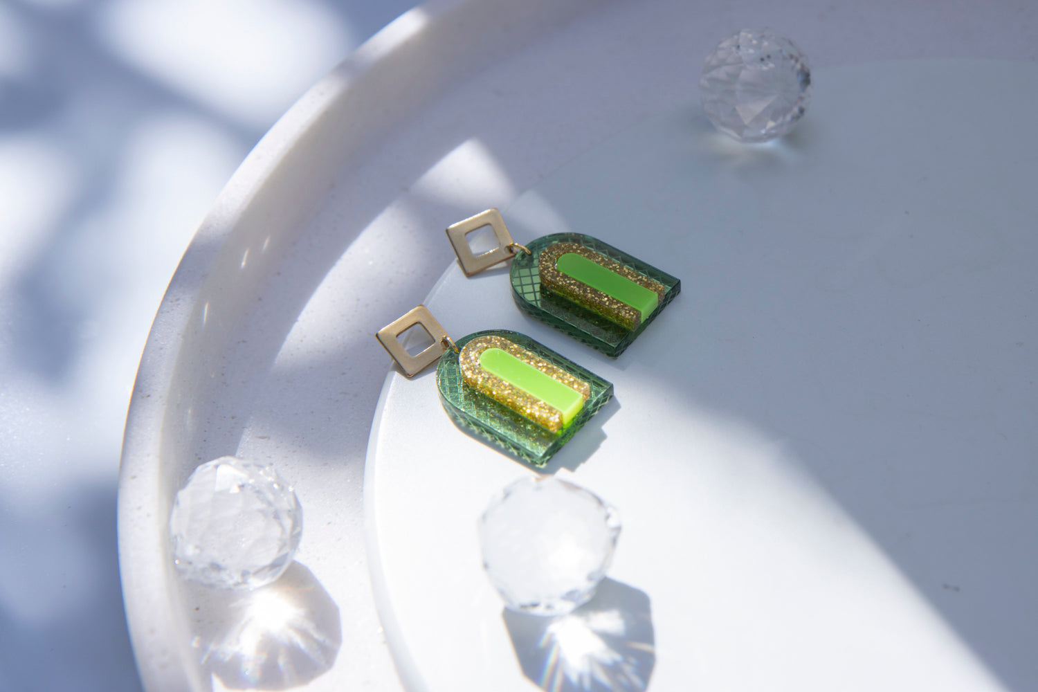 Ein Paar Ohrstecker „SINA“ aus Acrylglas, wahlweise als Ohrstecker oder Hänger erhältlich.