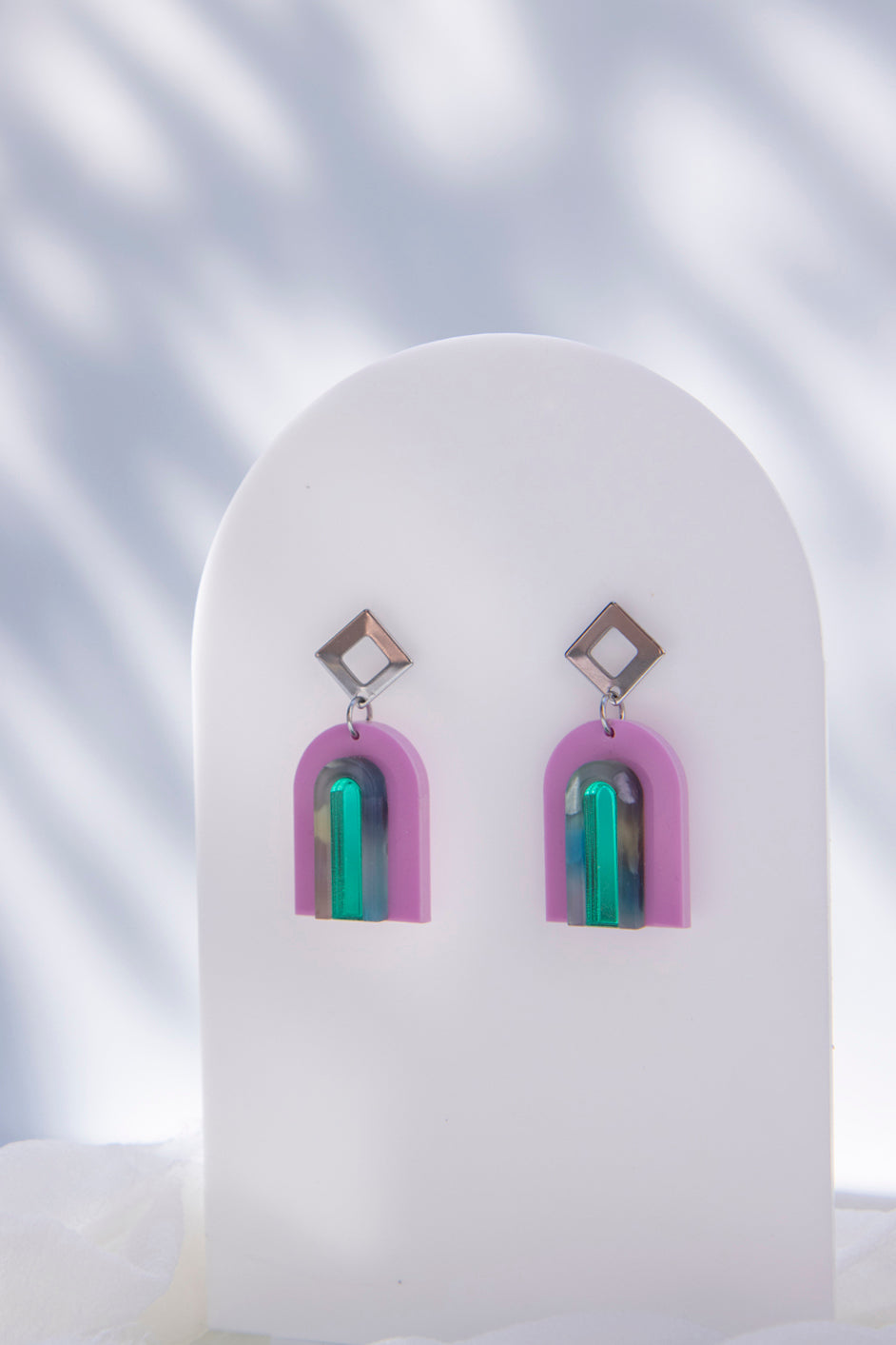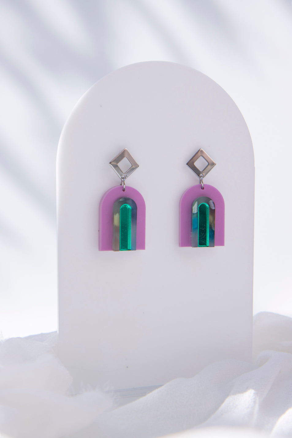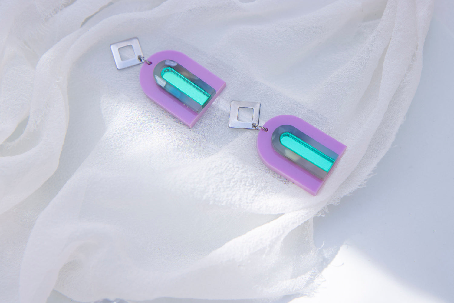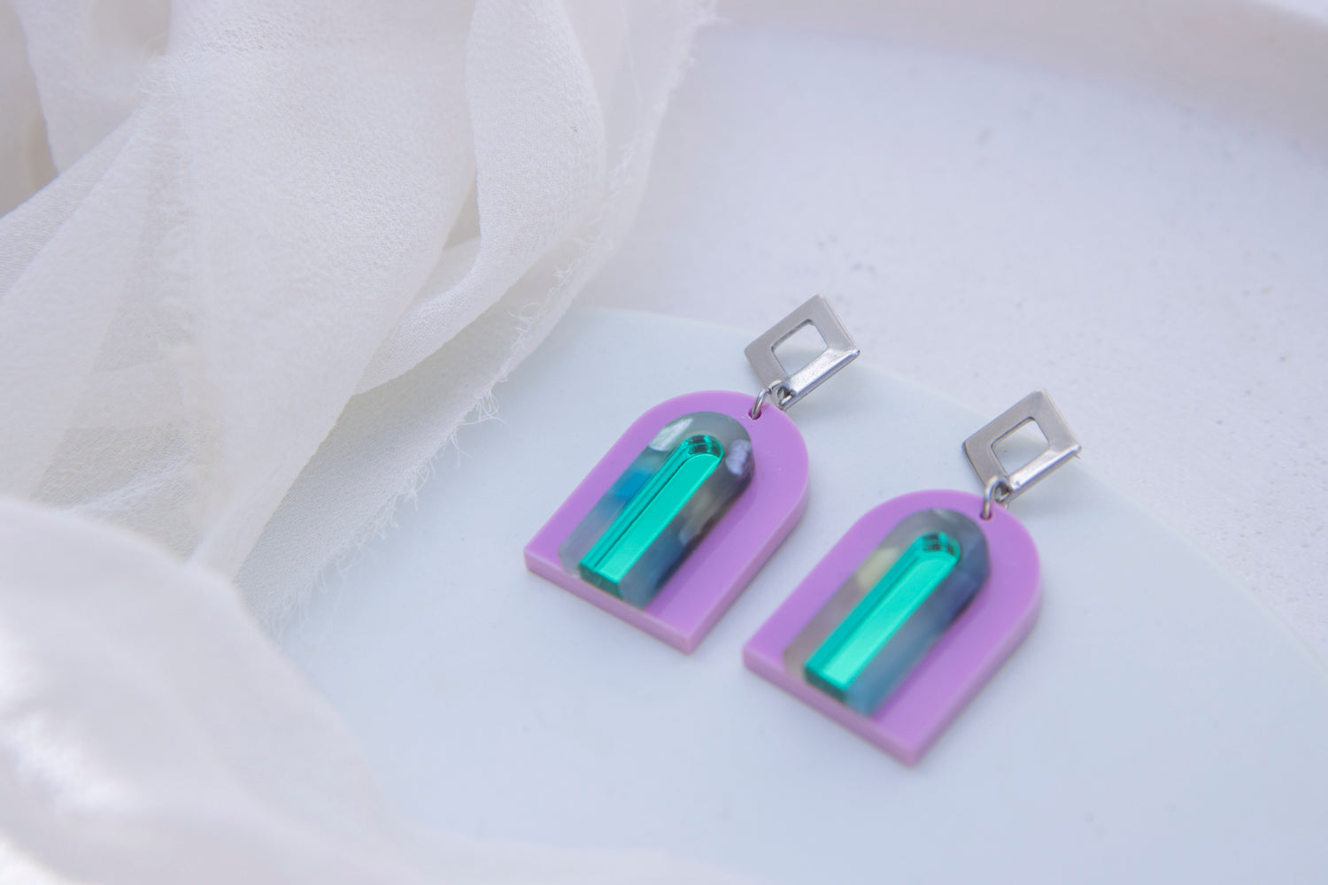 Ein Paar Ohrstecker „SINA“ aus Acrylglas, wahlweise als Ohrstecker oder Hänger erhältlich.