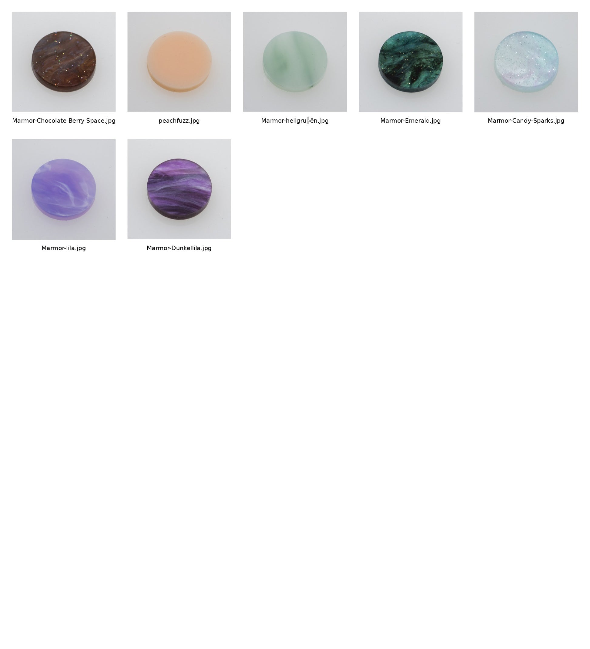 Candy Sparks, Marmor Dunkellila, Marmor-Hellgrün, Marmor-Lila, Emerald, Peach Sparks, Chocolate Berry Space