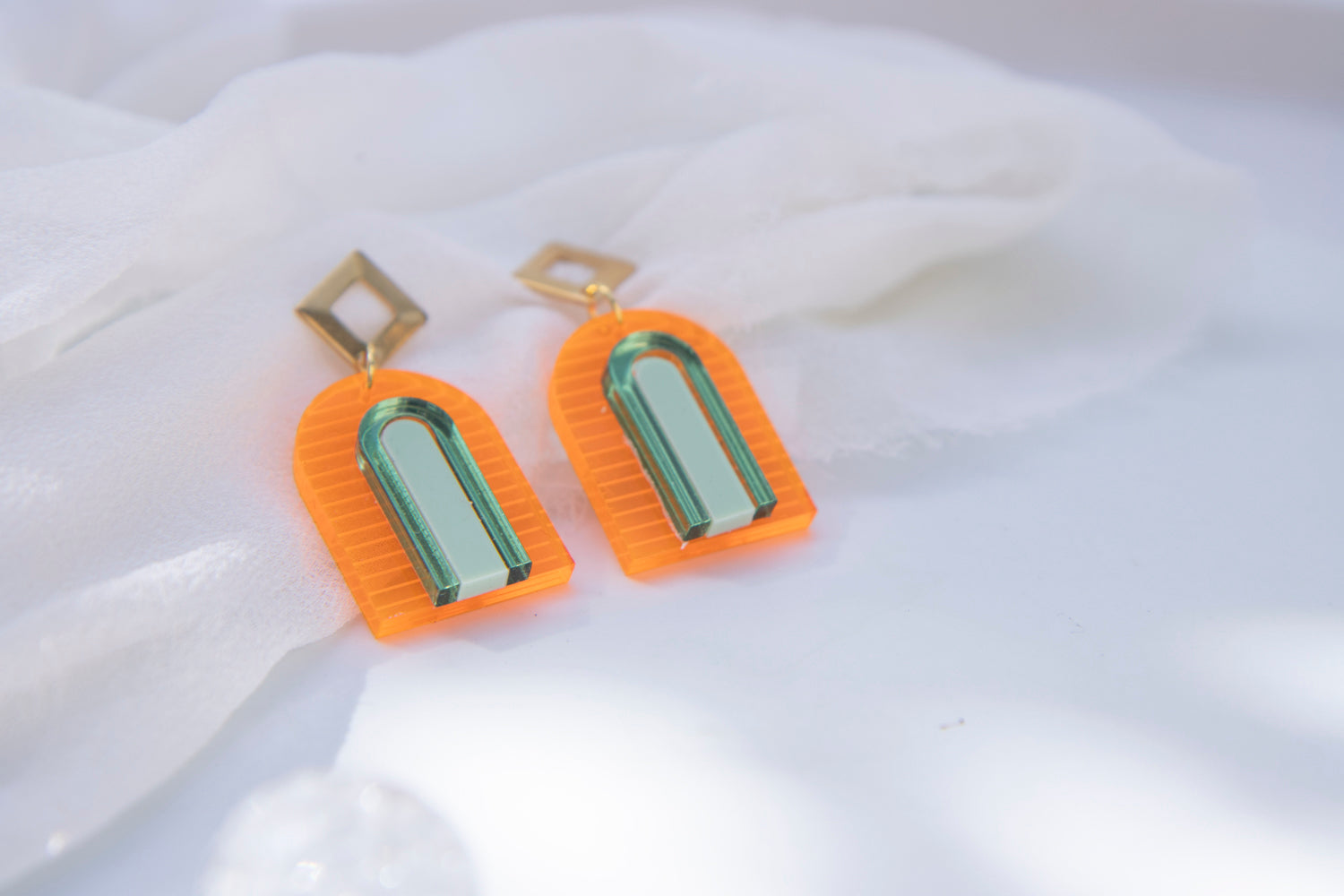 Ein Paar Ohrstecker „SINA“ aus Acrylglas, wahlweise als Ohrstecker oder Hänger erhältlich.