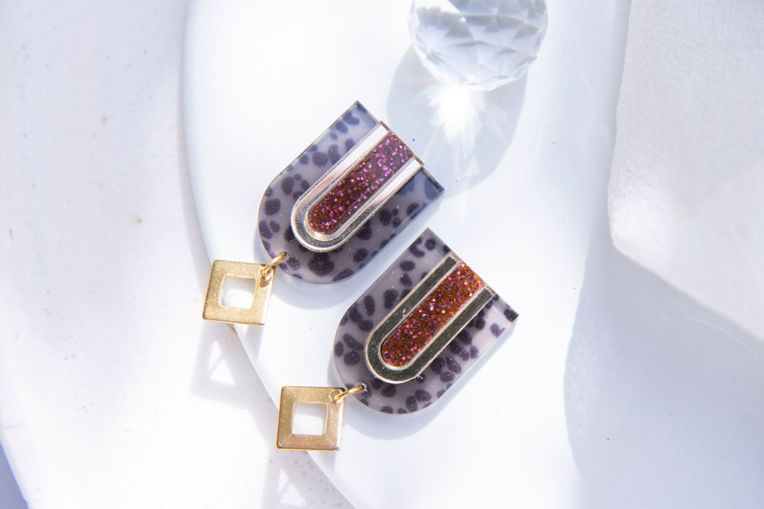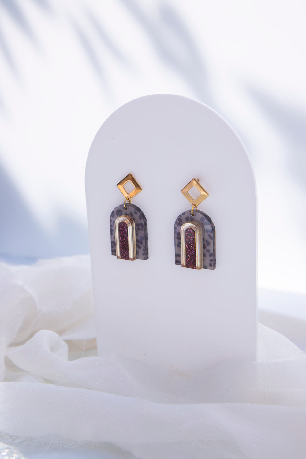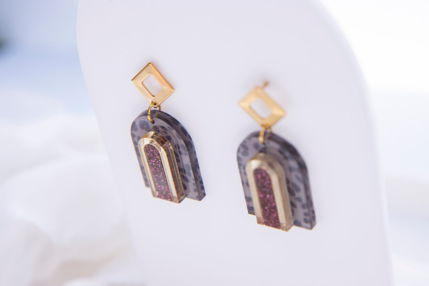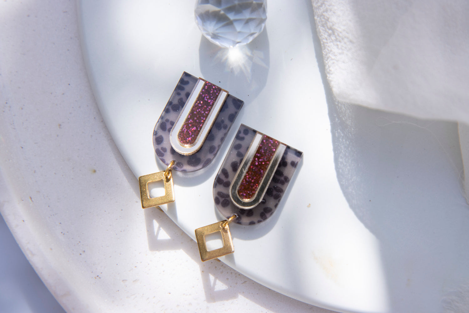 Ein Paar Ohrstecker „SINA“ aus Acrylglas, wahlweise als Ohrstecker oder Hänger erhältlich.