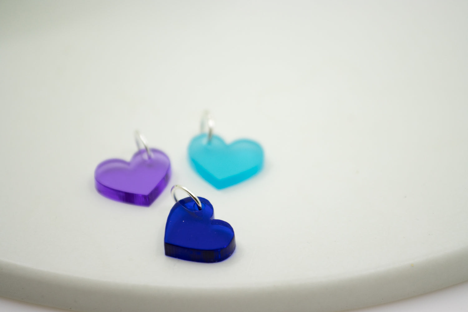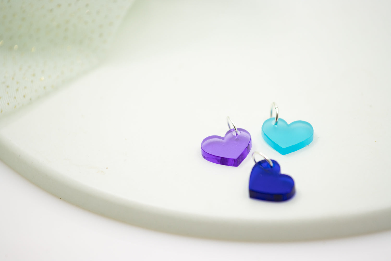 Gefertigt aus farbigem Acrylglas, per CO₂-Laser geschnitten und in Handarbeit mit einer feinen Edelstahlöse versehen. Die Öse ist nickelfrei und angenehm zur Haut – auch bei täglichem Tragen.