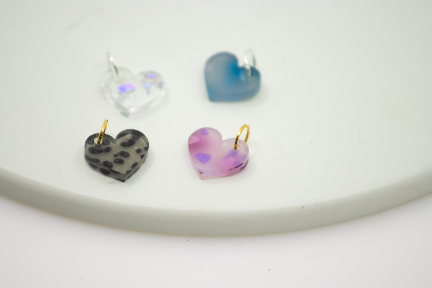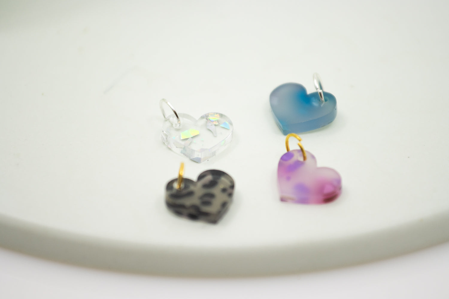 Der Midi Herz Kettenanhänger wird aus Acrylglas mit besonderen Oberflächen gefertigt – darunter Animal Print, Holografie, transparente Flakes oder Schildpattstruktur. Die Form ist flächig und reduziert, das Material sorgt für den visuellen Akzent. Je nach Farbe entstehen spiegelnde Effekte, changierende Flächen oder kontraststarke Muster.